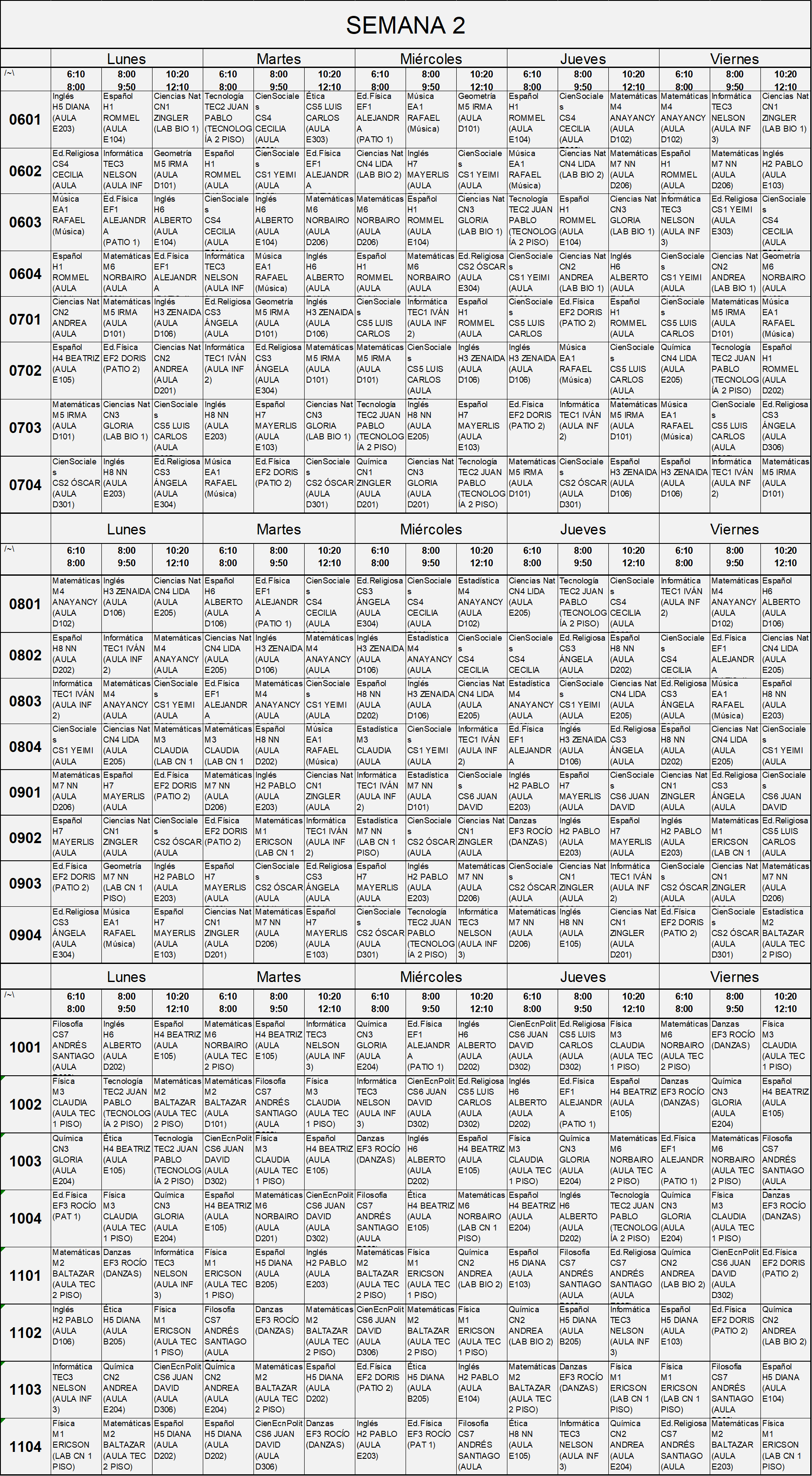 General, Periodico Horario de Clases Bachillerato 2022 Publicado por Carlos Javier el 27 enero, 202218 agosto, 2023 SEMANA 1 SEMANA 2